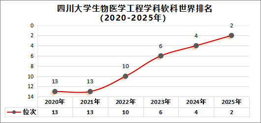 11月18日,高等教育评价专业机构软科正式发布2025“软科世界一流学科排名”(ShanghaiRanking's Global Ranking of Academic Subjects,简称GRAS)。四川大学生物医学工程学科以214.2分的总分排名跃升至全球第二位,比去年上升两位,实现历史性突破!