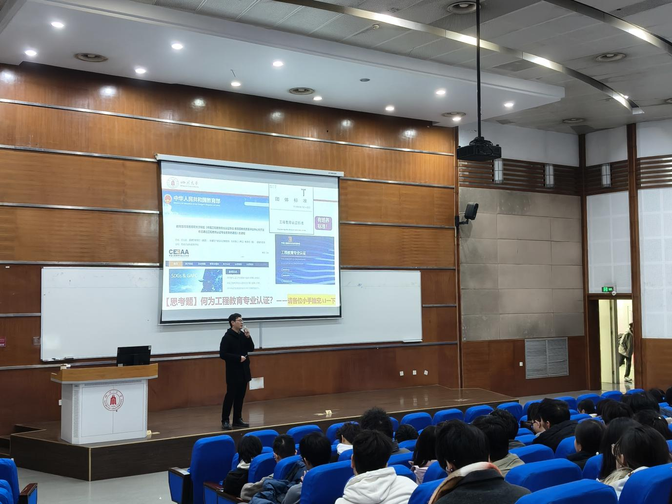 同日面向大一新生的讲座主题为“‘告别盲卷’——大一新生的专业认知与生涯导航”。生物医学工程系系主任杨为中教授与本科专职辅导员张倪惠老师联袂主讲,为入学三个月的新生提供系统指导。