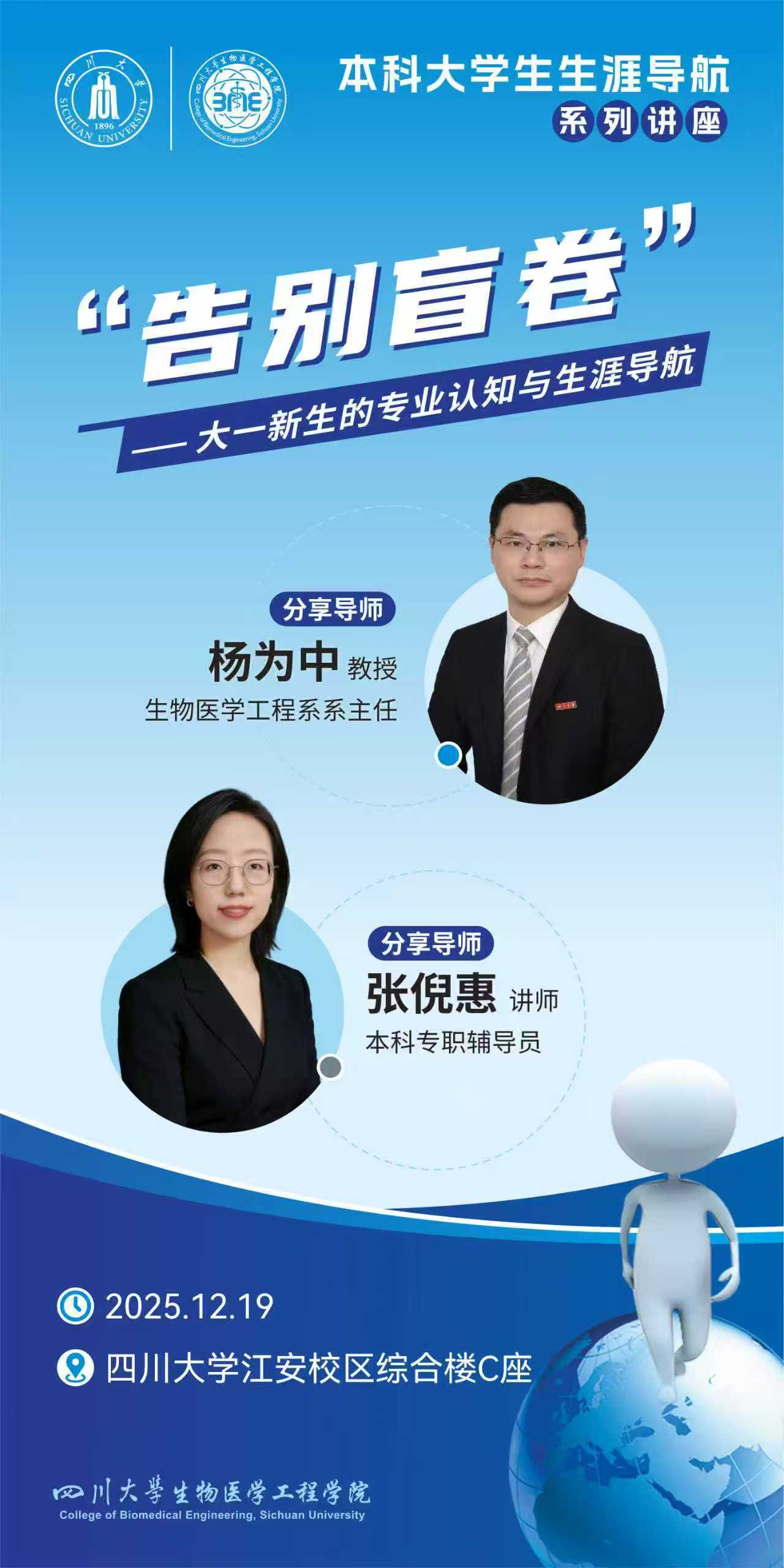 12月5日-19日,生物医学工程学院聚焦本科生成长期待解决的核心问题,成功举办三场生涯导航专题讲座。该系列作为学院人才培养的品牌活动,坚持“常态化开展、精准对接学生需求”的原则,聚焦学生成长痛点,旨在搭建优质交流分享平台,为不同年级学生提供针对性指导。
