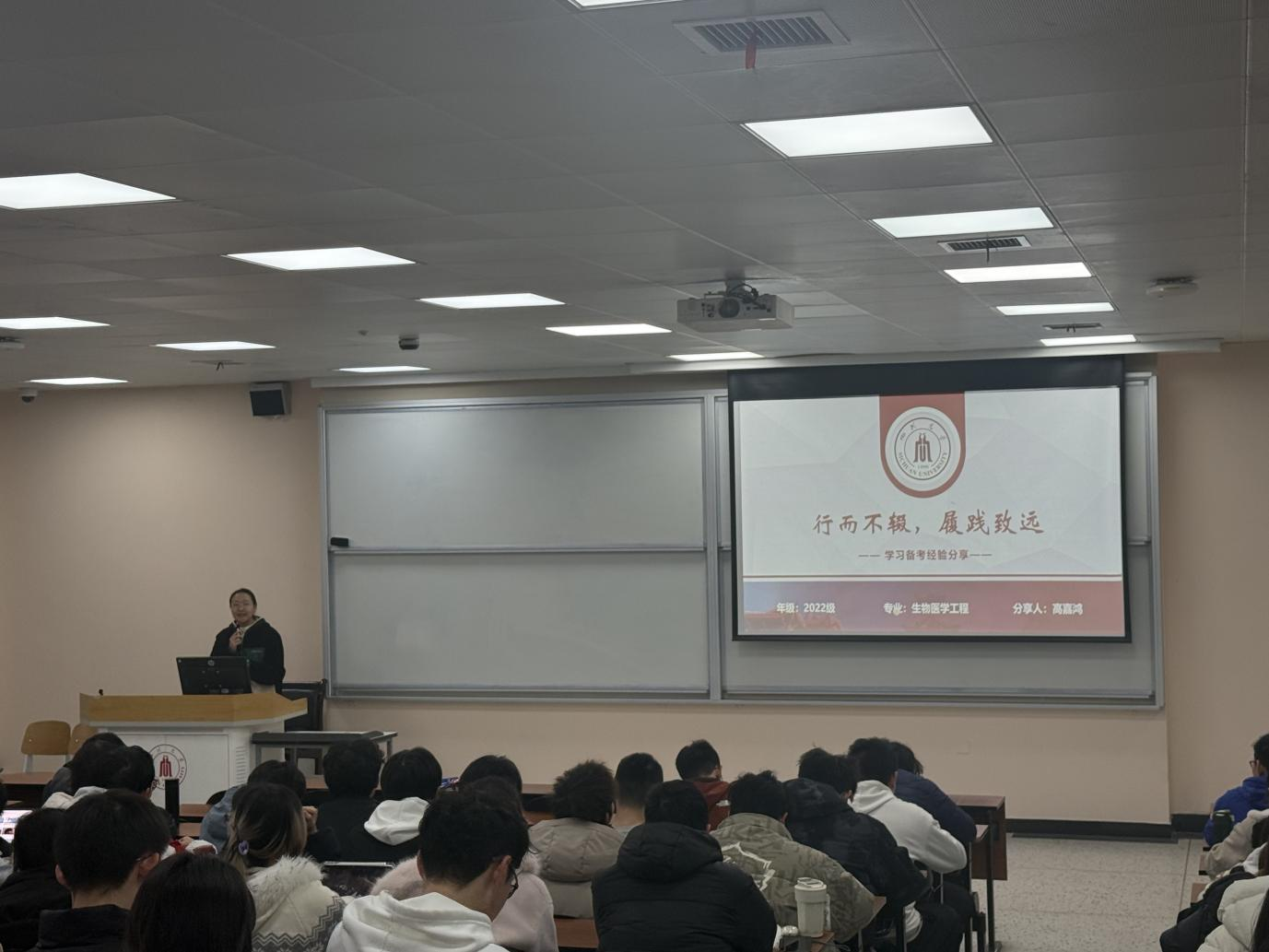 12月19日,学院同步举办两场针对性专场讲座。面向大二年级学生的“以热爱驱行,以笃行逆袭——学姐的成长启示录”讲座,邀请2022级医学信息工程专业张靖秋和生物医学工程专业高嘉鸿两位优秀学生分享经验。