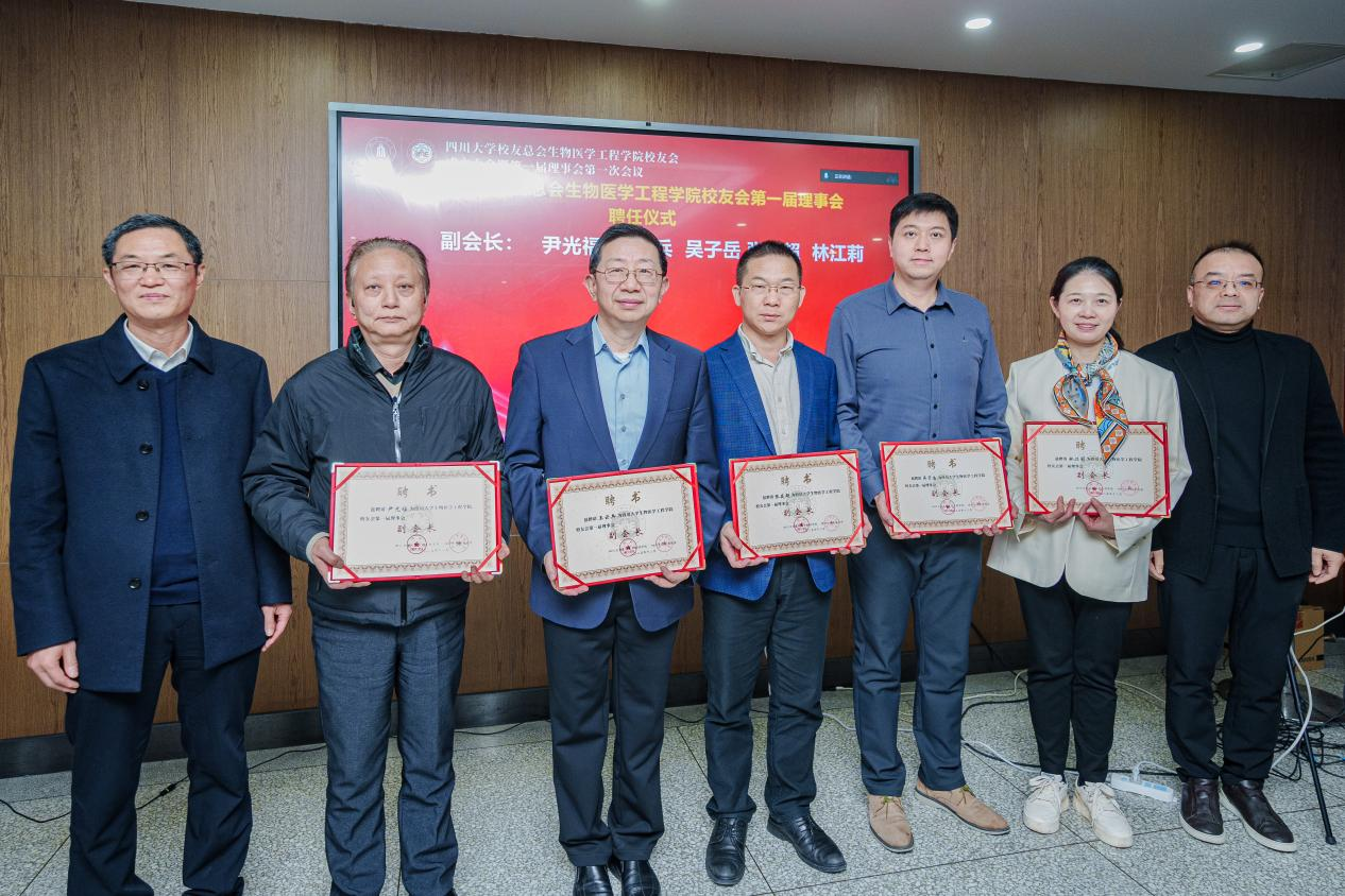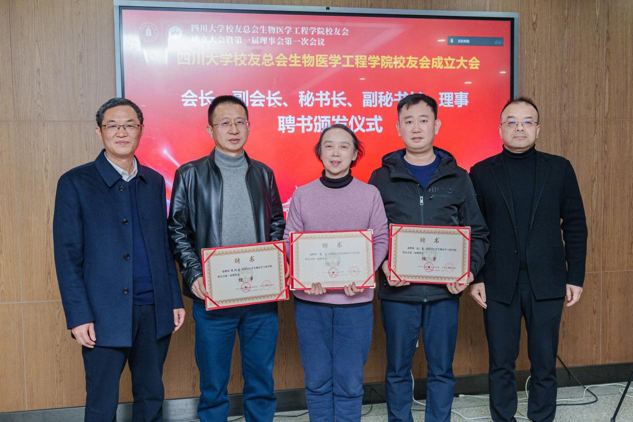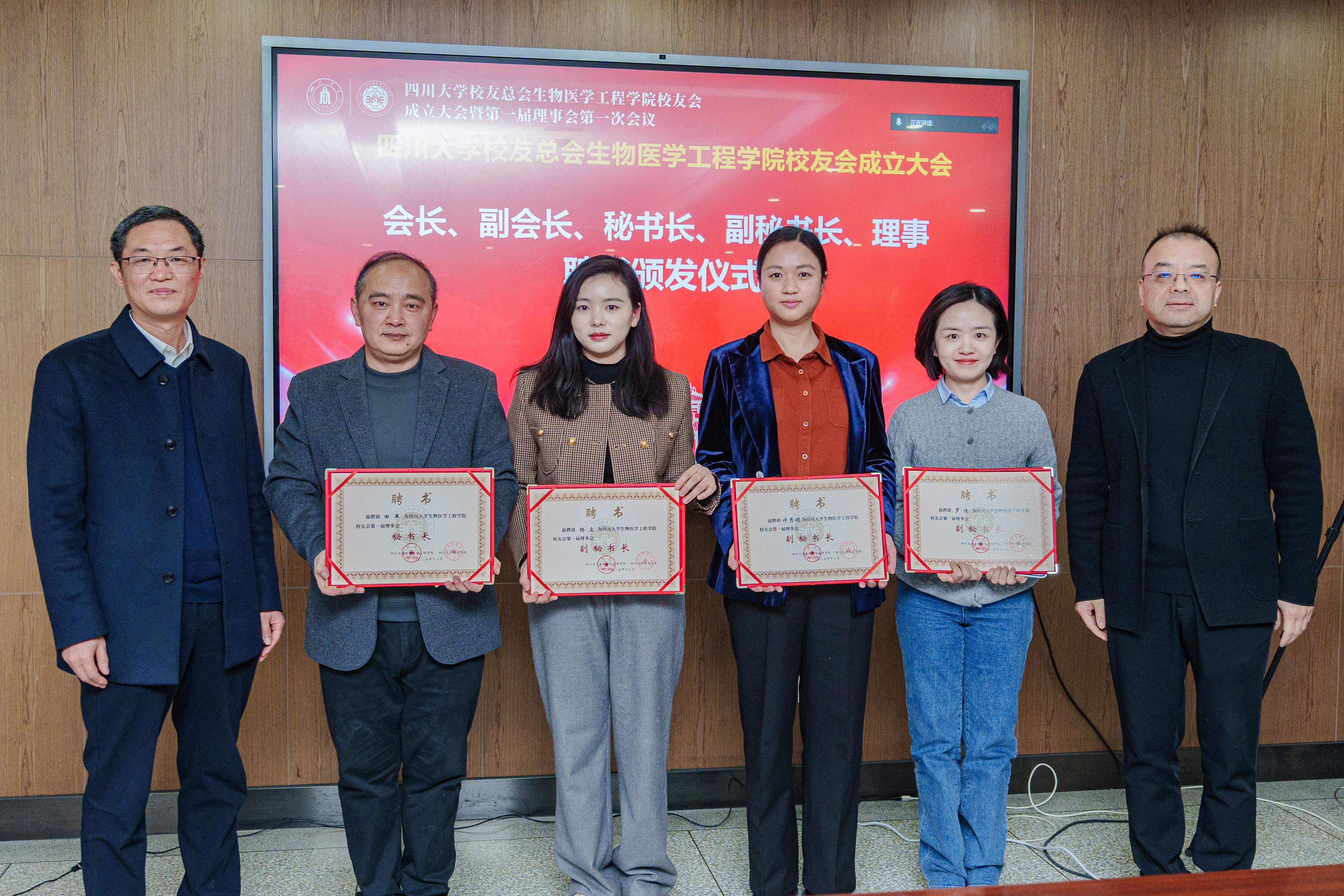 学校对外联络办公室主任、校友总会秘书长杨光宣读《四川大学校友总会关于同意成立生物医学工程学院校友会的批复》及学院校友会理事会名单。与会领导为理事会成员颁发聘书。