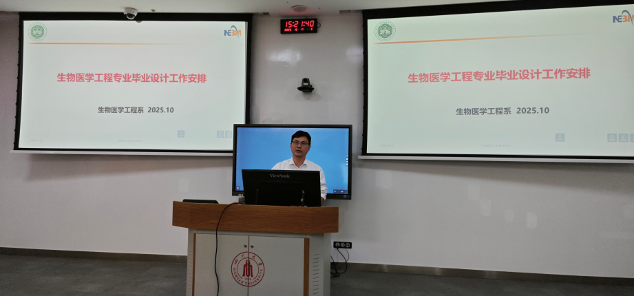 10 月 17 日下午,生物医学工程学院在基教 C102 召开本科毕业论文培训会。全体参与本科毕业论文指导工作的教师参会,旨在规范毕业论文各环节工作,明确质量要求,为顺利完成本科人才培养及配合本科教学审核评估筑牢基础。会议由生物医学工程系主任杨为中主持。